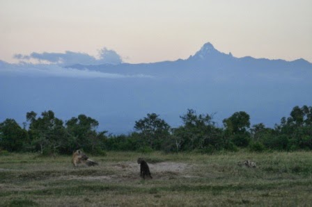 The other night I drove to see the hyena den (which is still in the same place near the airstrip, but with a new litter of young pups). This was just before sunset and there was an amazing, clear view of Mount Kenya for the first time since I returned. And the hyena den was situated right in front of it.